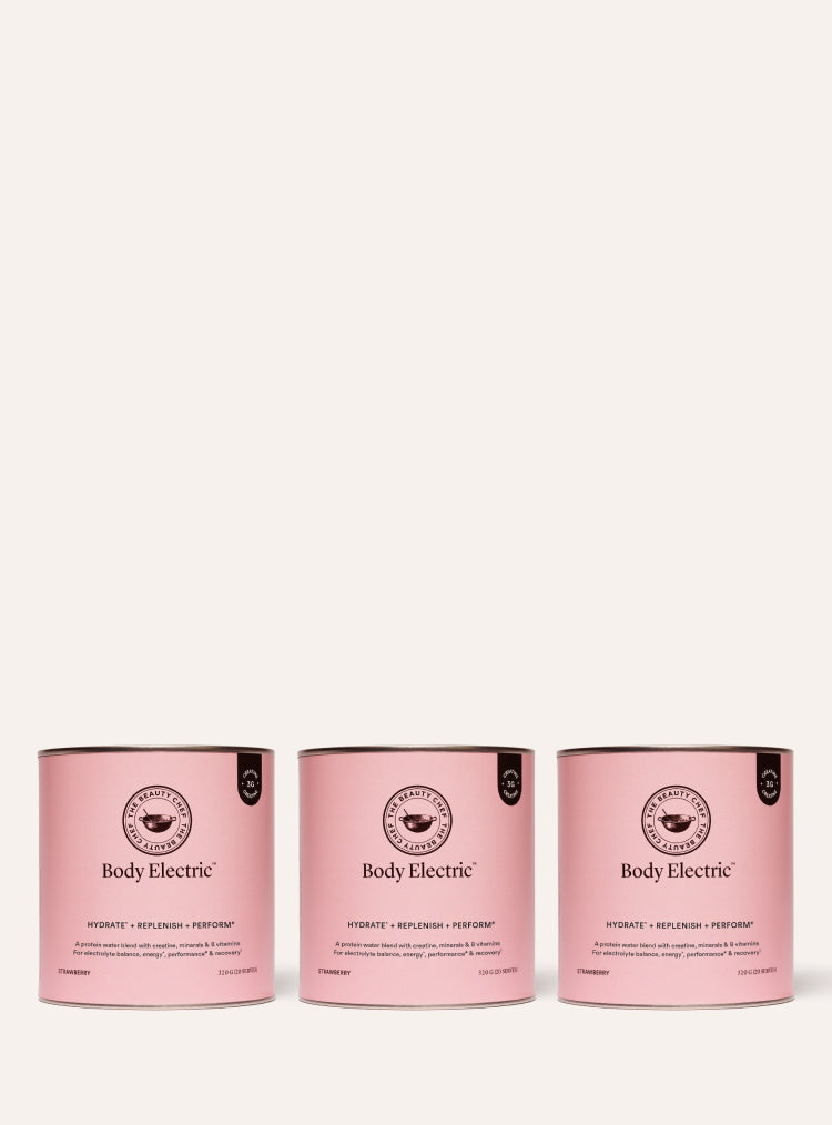 A three-pack of our strawberry-flavoured protein water blend, powered by creatine, electrolytes, hydrolysed plant protein and activated B vitamins. Support deep hydration^, energy, physical performance, mental stamina & recovery.