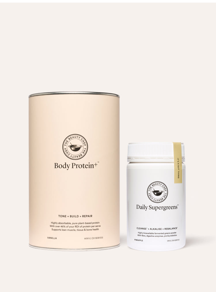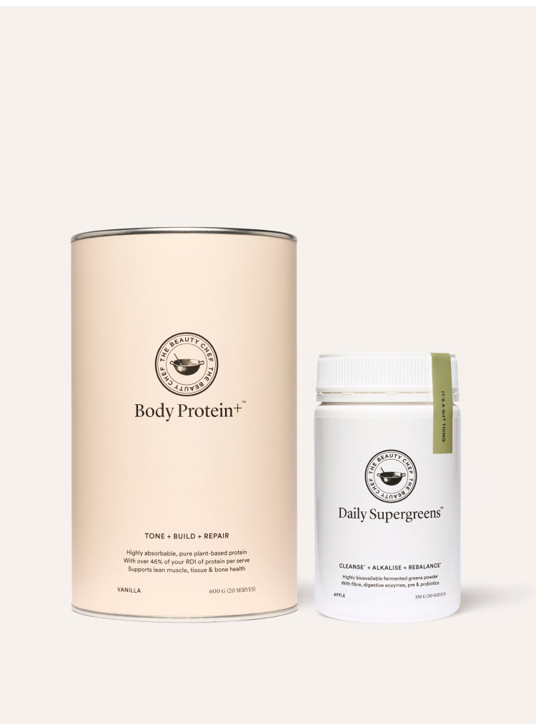 Body Protein+: Formulated to support your daily protein intake, as well as the growth and maintenance of healthy muscles, this delicious paleo and vegan-friendly protein powder contains a high level of easily absorbable organic plant proteins including sprouted and fermented pea protein, chia seed, as well as faba bean and digestive enzymes. With a full amino acid profile (including all BCAAs), this powerhouse powder is gentle on the gut, will help you hit your wellness goals and stay fuller for longer.