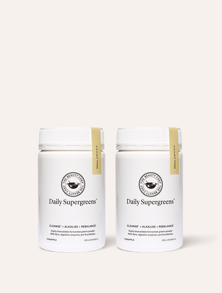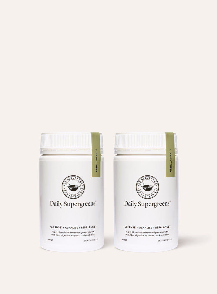 Mix 2 tsp (7g) in 200mL of water, a smoothie or your favourite drink. For optimal results, DAILY SUPERGREENS Inner Beauty Support should be consumed daily in chilled or room temperature beverages and can be combined with any other Beauty Chef product. Take intensively as part of the 14-Day Cleanse Program.
