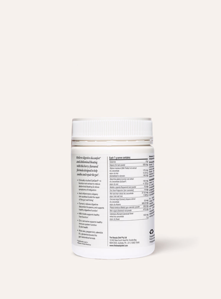 This restorative gut health powder contains medicinal herbs and nutrients to help repair, soothe and prime the gut. Now with an improved berry flavour and supercharged with GutGard®—a clinically studied licorice root extract to relieve abdominal bloating and support digestive wellbeing.