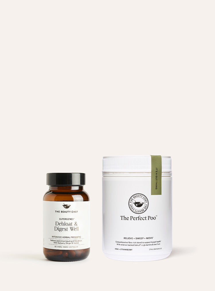 The Perfect Poo: Advanced fibre-rich blend to promote microbial diversity and healthy & regular bowel movements. With benefits that go beyond traditional fibre supplements, this comprehensive formula harnesses science-backed Solnul® to sweep and feed your gut – helping your gut flora flourish while supporting regular bowel movements & normal poo consistency. With three different types of fibre and boosted with plant-based extracts, including marshmallow root, L-glutamine, baobab, turkey tail mushroom & kiwi fruit.