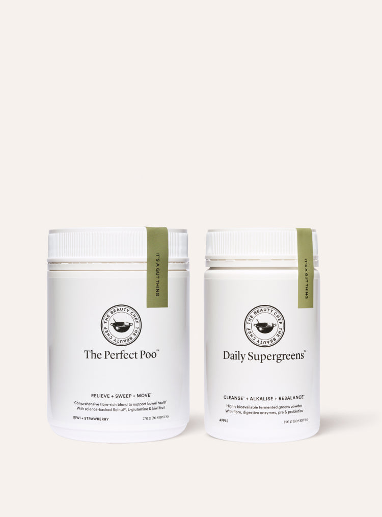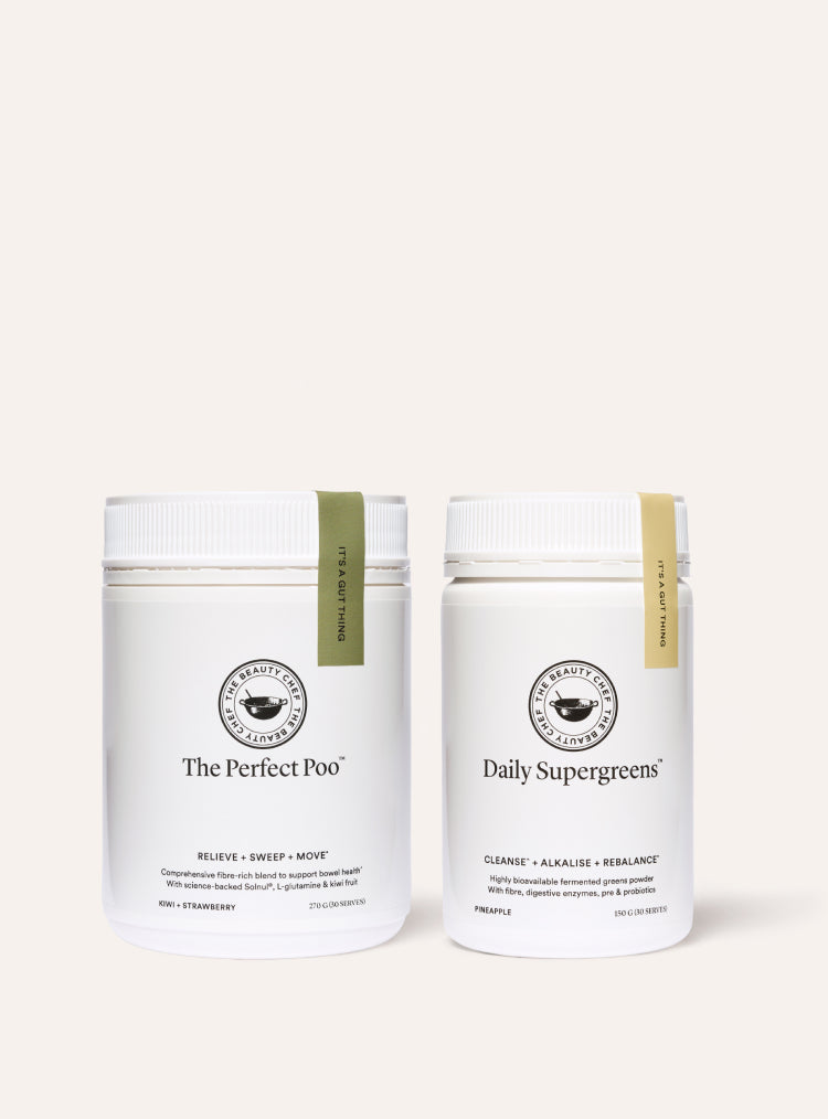 Looking to keep things moving? This duo pairs our comprehensive fibre blend for bowel health and microbial diversity with a supercharged serving of green goodness.