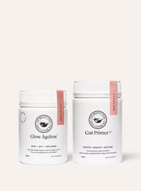 Gut out of whack? Start with Gut Primer+® to soothe, debloat and repair. Back on track? Transition to Glow Ageless™ (for people 50+), our bestselling supernutrient powder for glowing skin, gut health and whole-body wellness.