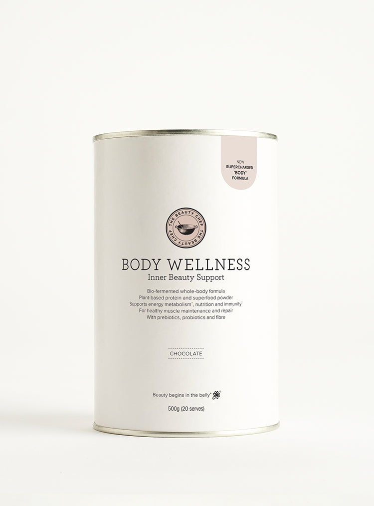 BODY Inner Beauty Support - Chocolate: Mix 1 level scoop (25g) in 250mL of water, a smoothie or milk of your choice. For optimal results, BODY should be consumed daily in chilled or room temperature beverages and can be taken with any other Beauty Chef product.